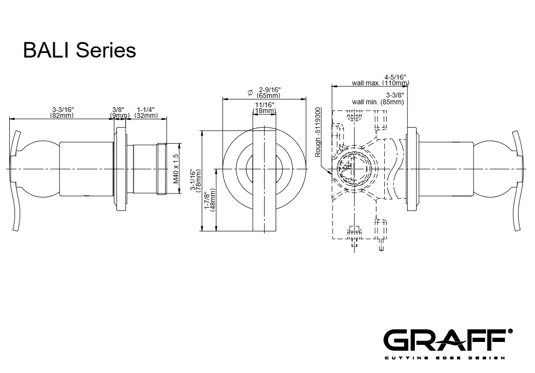 Graff Bali Rozdzielacz 3-drożny podtynkowy - element zewnętrzny Chrom E-8039-LM20E1-T
