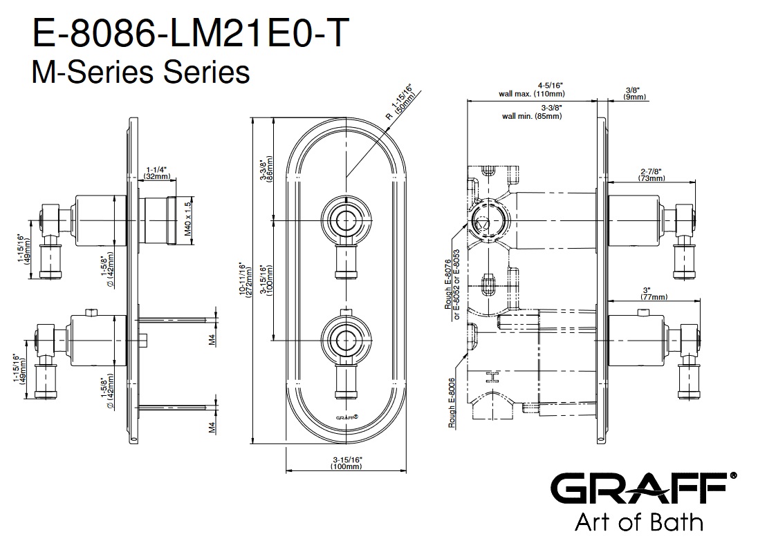 Graff Bali Bateria prysznicowa termostatyczna 2-uchwytowa podtynkowa - element zewnętrzny Chrom E-8086-LM21E0-T