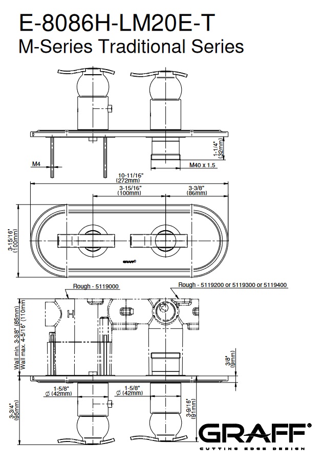 Graff Bali Bateria prysznicowa termostatyczna 2-uchwytowa podtynkowa - element zewnętrzny Chrom E-8086H-LM20E0-T