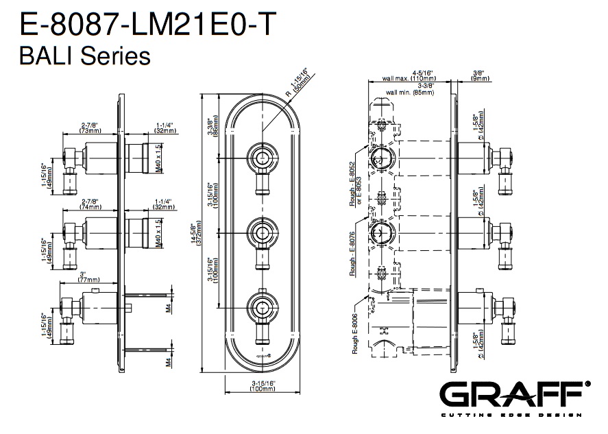 Graff Bali Bateria prysznicowa termostatyczna 3-uchwytowa podtynkowa - element zewnętrzny Chrom E-8087-LM20E0-T