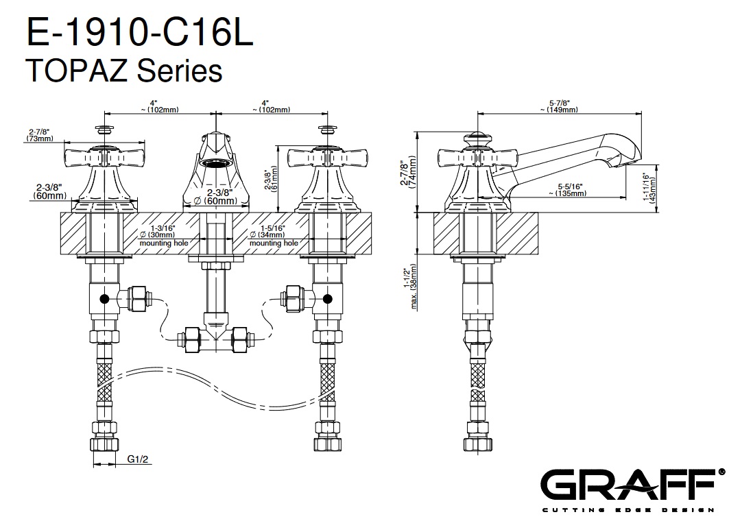 Graff Topaz Bateria umywalkowa 3-otworowa Chrom E-1910-C16L