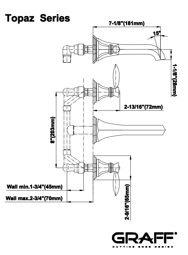 Graff Topaz Bateria umywalkowa 3-otworowa podtynkowa - element podtynkowy Chrom E-1930-LM14