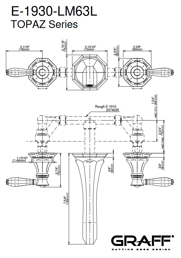 Graff Topaz Bateria umywalkowa 3-otworowa podtynkowa - element podtynkowy Chrom E-1930-LM63L