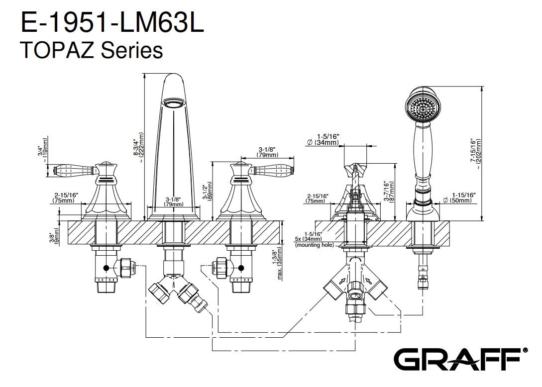 Graff Topaz Bateria wannowa 5-otworowa z zestawem prysznicowym Chrom E-1951-LM14B