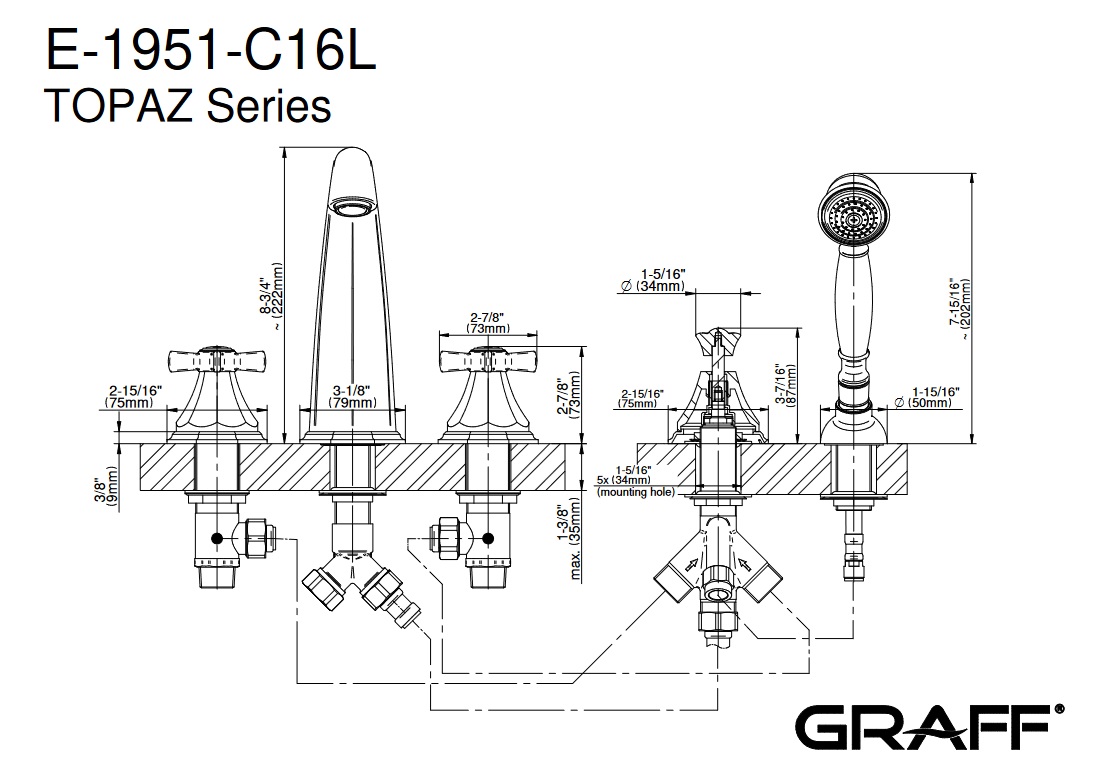 Graff Topaz Bateria wannowa 5-otworowa z zestawem prysznicowym Chrom E-1951-C16L