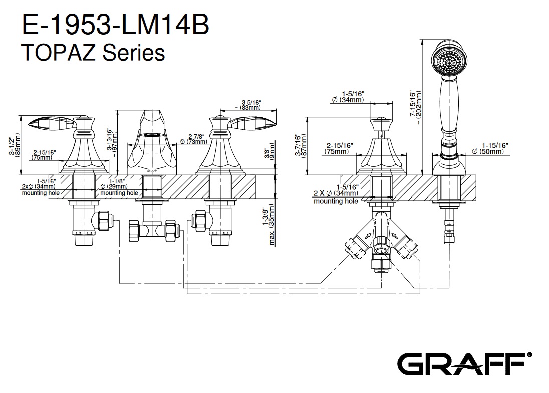 Graff Topaz Bateria wannowa 5-otworowa z zestawem prysznicowym Chrom E-1953-LM14B