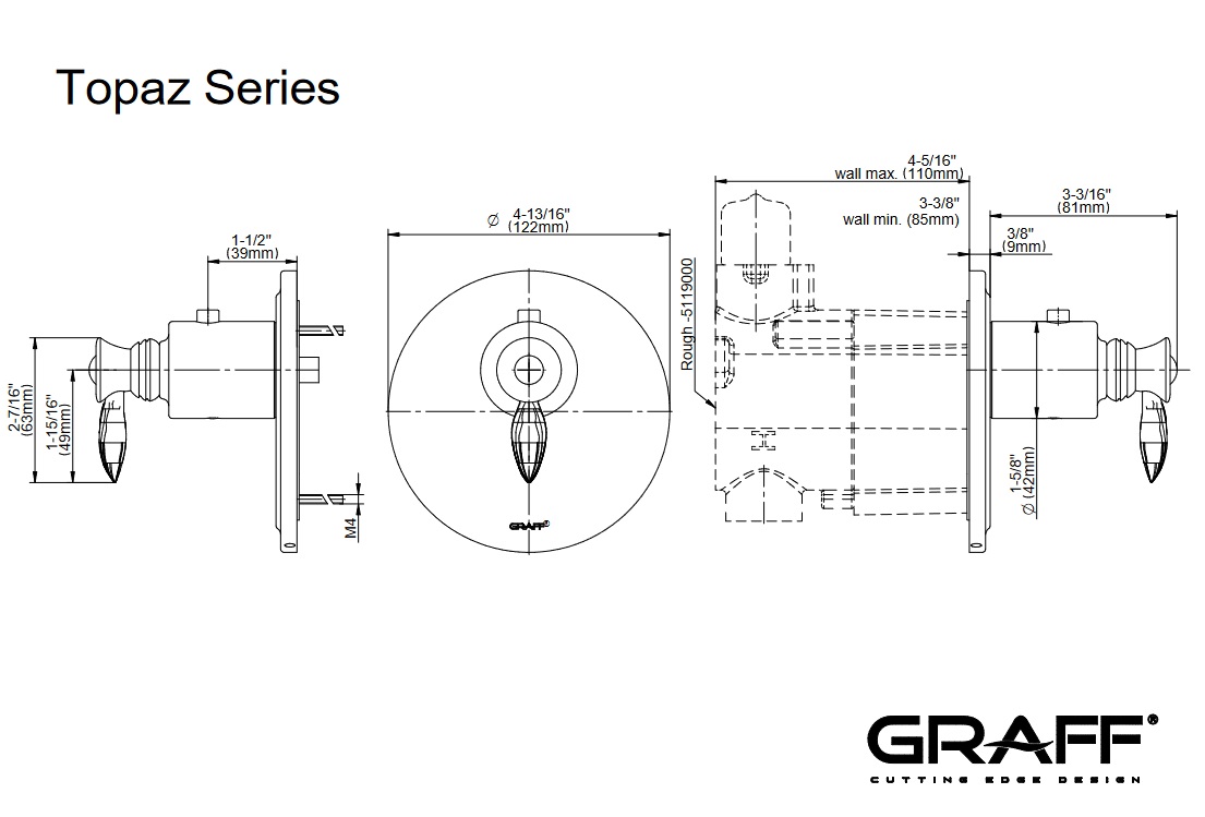 Graff Topaz Bateria natryskowa termostatyczna podtynkowa - element zewnętrzny Chrom E-8031-LM14E-T