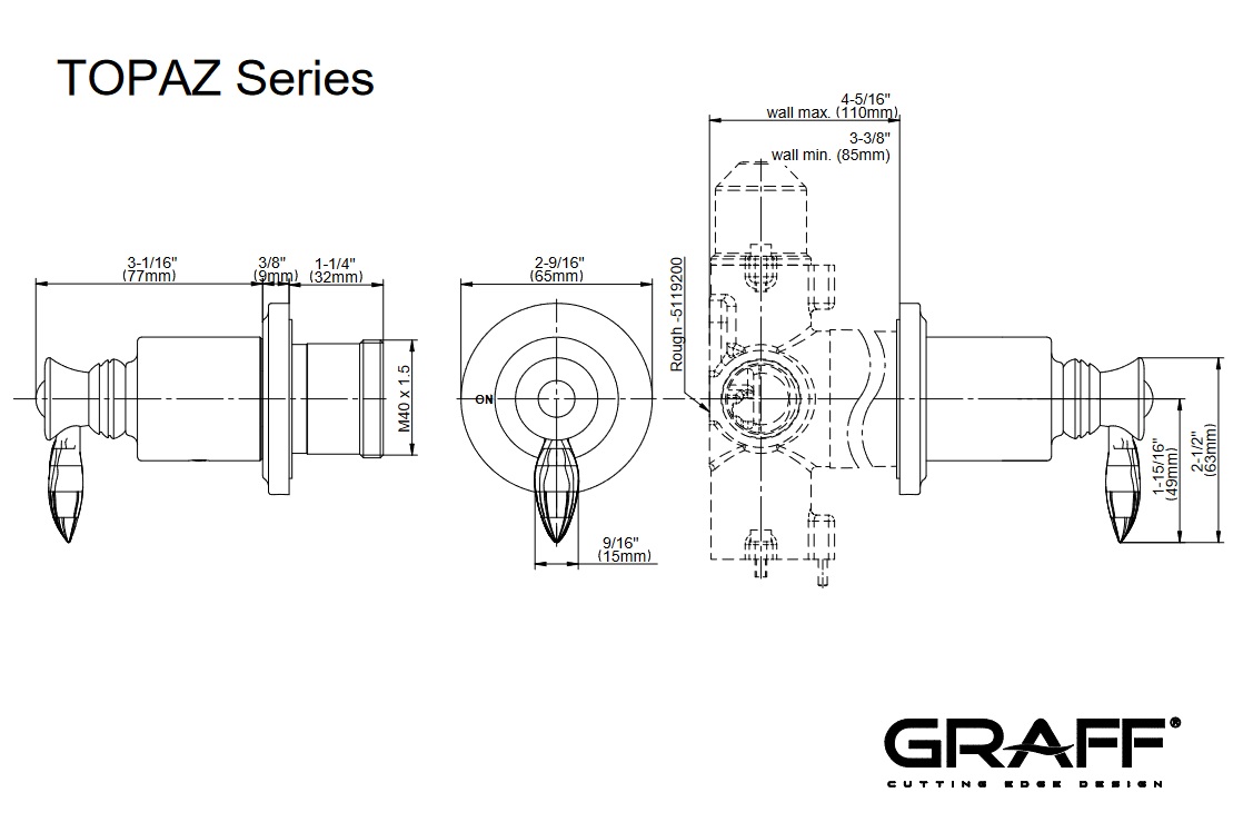 Graff Topaz Rozdzielacz 2-drożny podtynkowy - element zewnętrzny Chrom E-8038-LM14E1-T