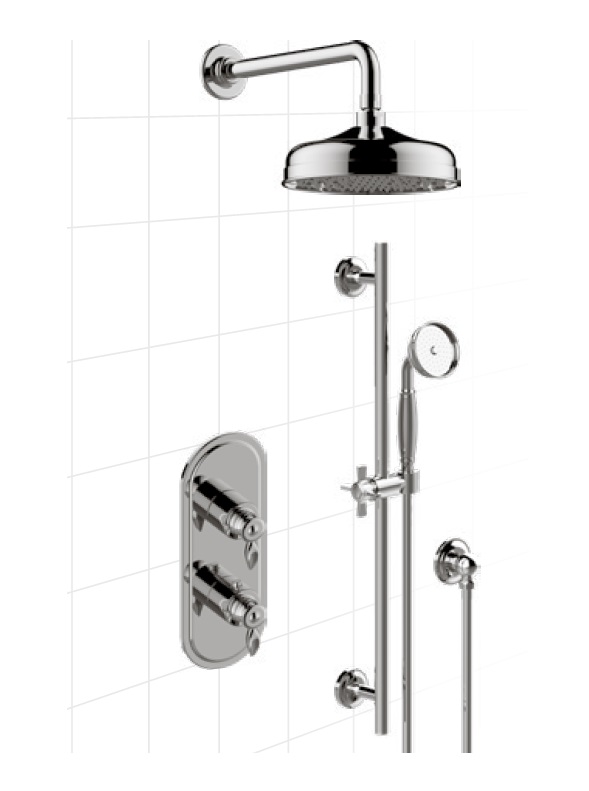Graff Topaz Zestaw natryskowy termostatyczny podtynkowy z deszczownicą Ø 205 mm z zestawem prysznicowym na drążku - element zewnętrzny Chrom TOP02