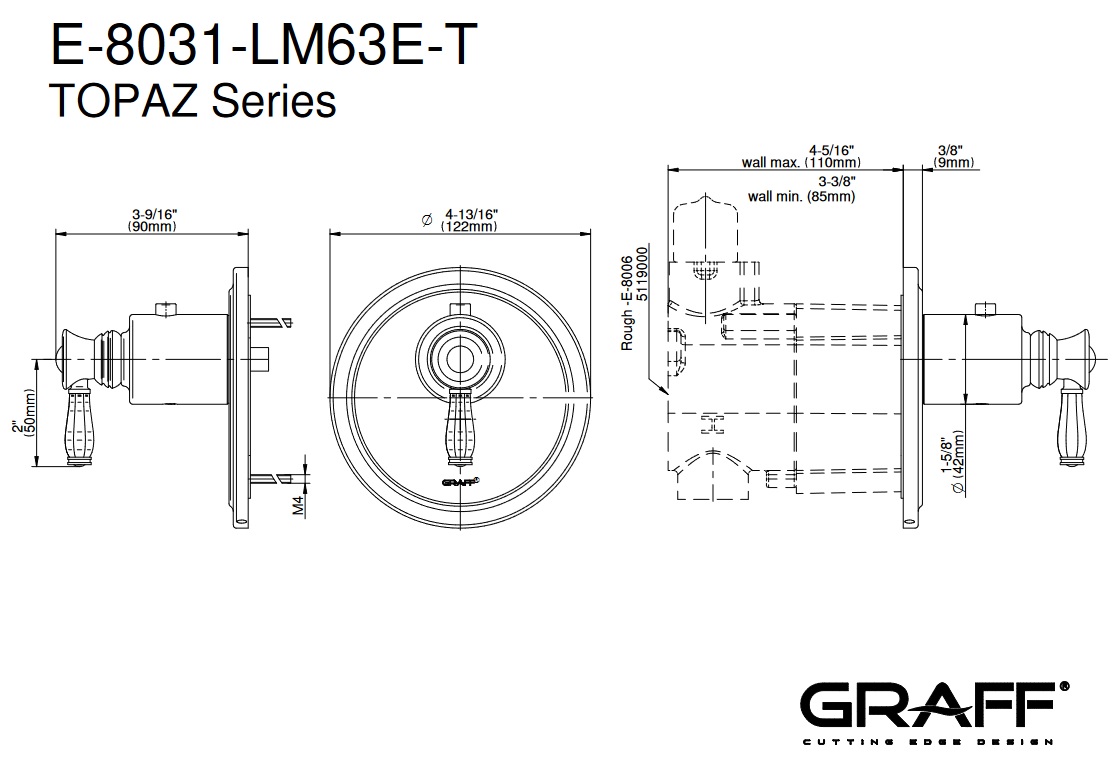 Graff Topaz Bateria natryskowa termostatyczna podtynkowa - element zewnętrzny Chrom E-8031-LM63E-T