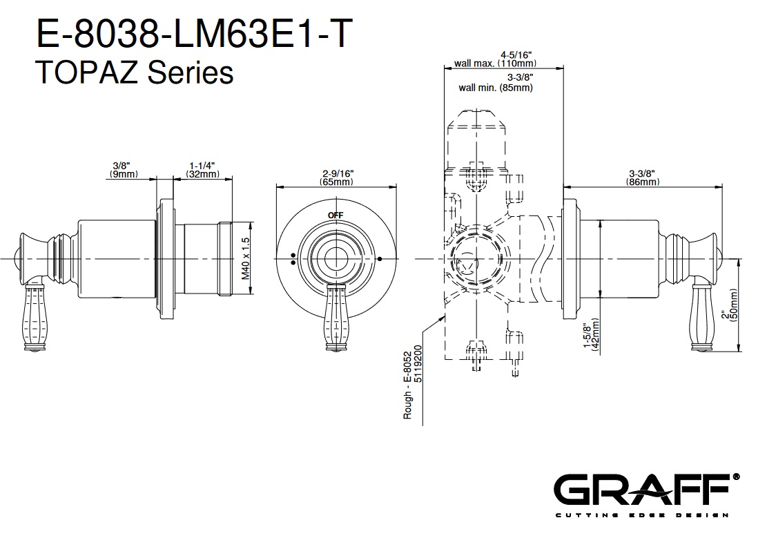 Graff Topaz Rozdzielacz 2-drożny podtynkowy - element zewnętrzny Chrom E-8038-LM63E1-T