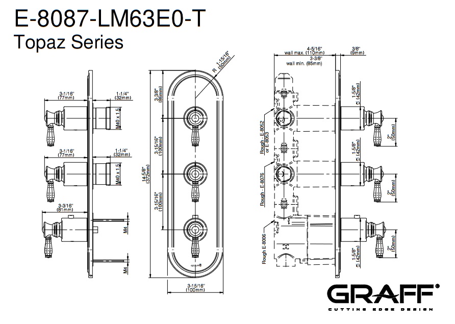 Graff Topaz Bateria prysznicowa termostatyczna 3-uchwytowa podtynkowa - element zewnętrzny Chrom E-8087-LM63E0-T