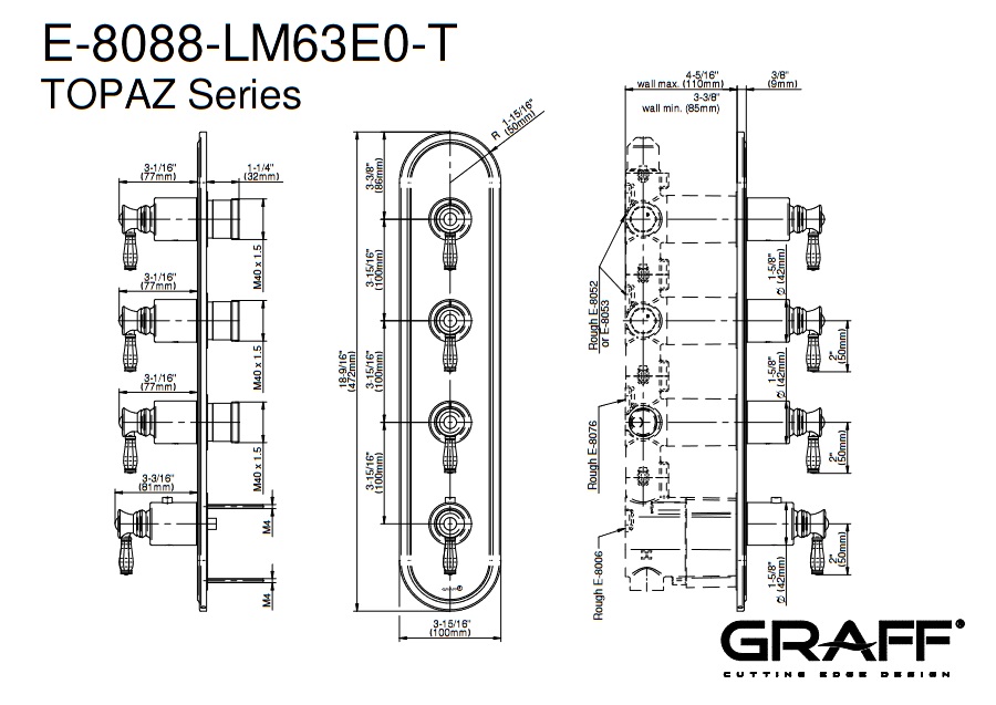 Graff Topaz Bateria prysznicowa termostatyczna 4-uchwytowa podtynkowa - element zewnętrzny Chrom E-8088-LM63E0-T