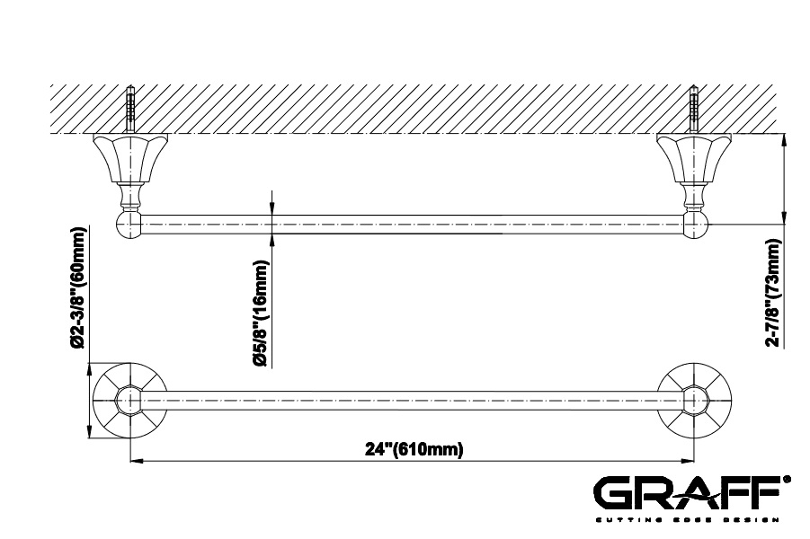 Graff Topaz Wieszak na ręcznik ścienny 610 mm Chrom E-9064