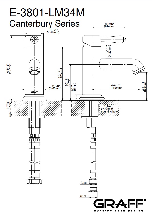 Graff Adley Bateria umywalkowa jednouchwytowa Chrom E-3801-LM34M