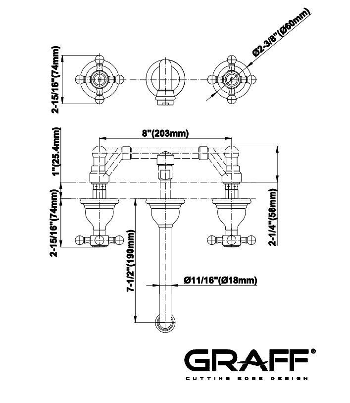 Graff Adley Bateria umywalkowa 3-otworowa podtynkowa 190 mm - element zewnętrzny Chrom E-2530-C2-T