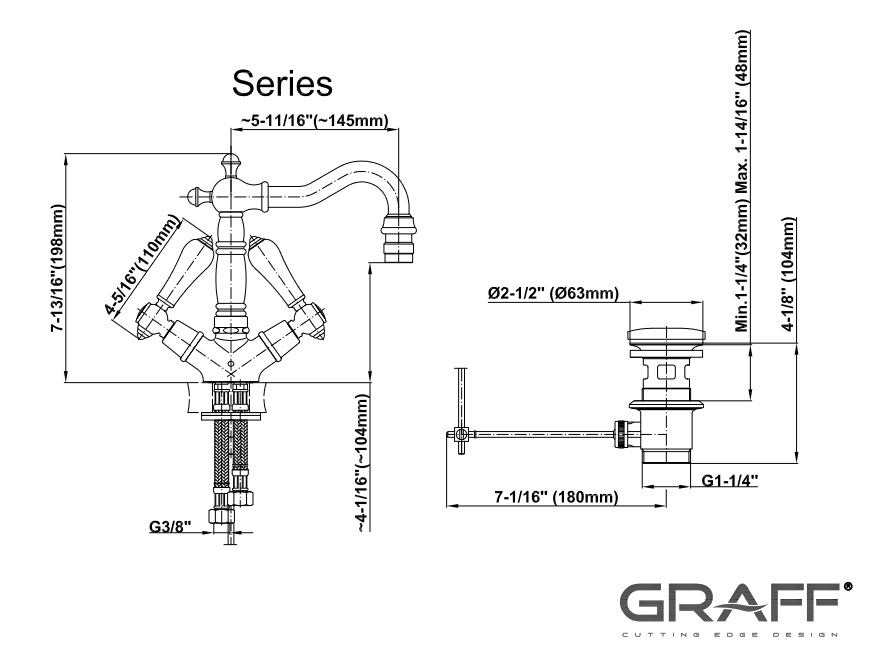 Graff Adley Bateria bidetowa jednootworowa z korkiem Chrom E-2562-LM34