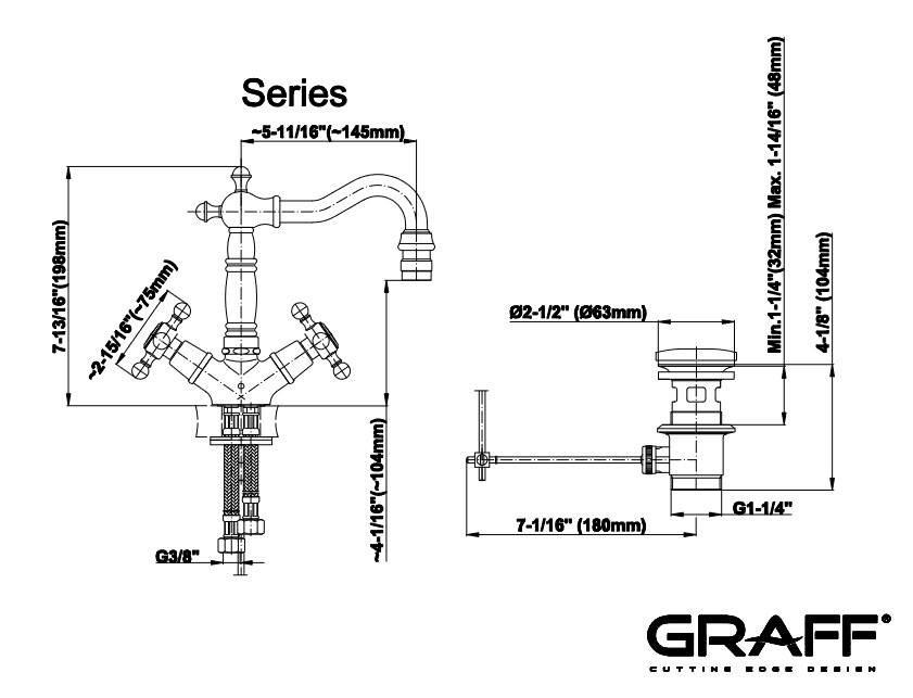 Graff Adley Bateria bidetowa jednootworowa z korkiem Chrom E-2562-C2