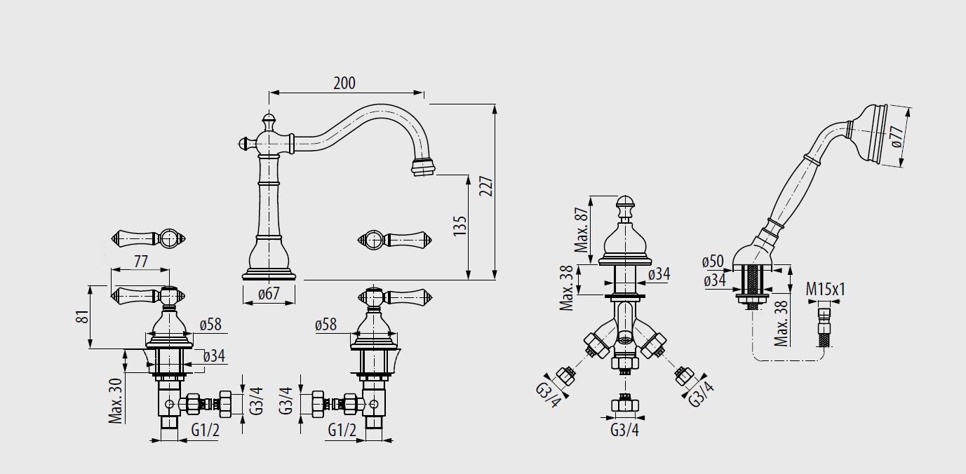 Graff Adley Bateria wannowa 5-otworowa z zestawem prysznicowym Chrom E-2551M-LM34