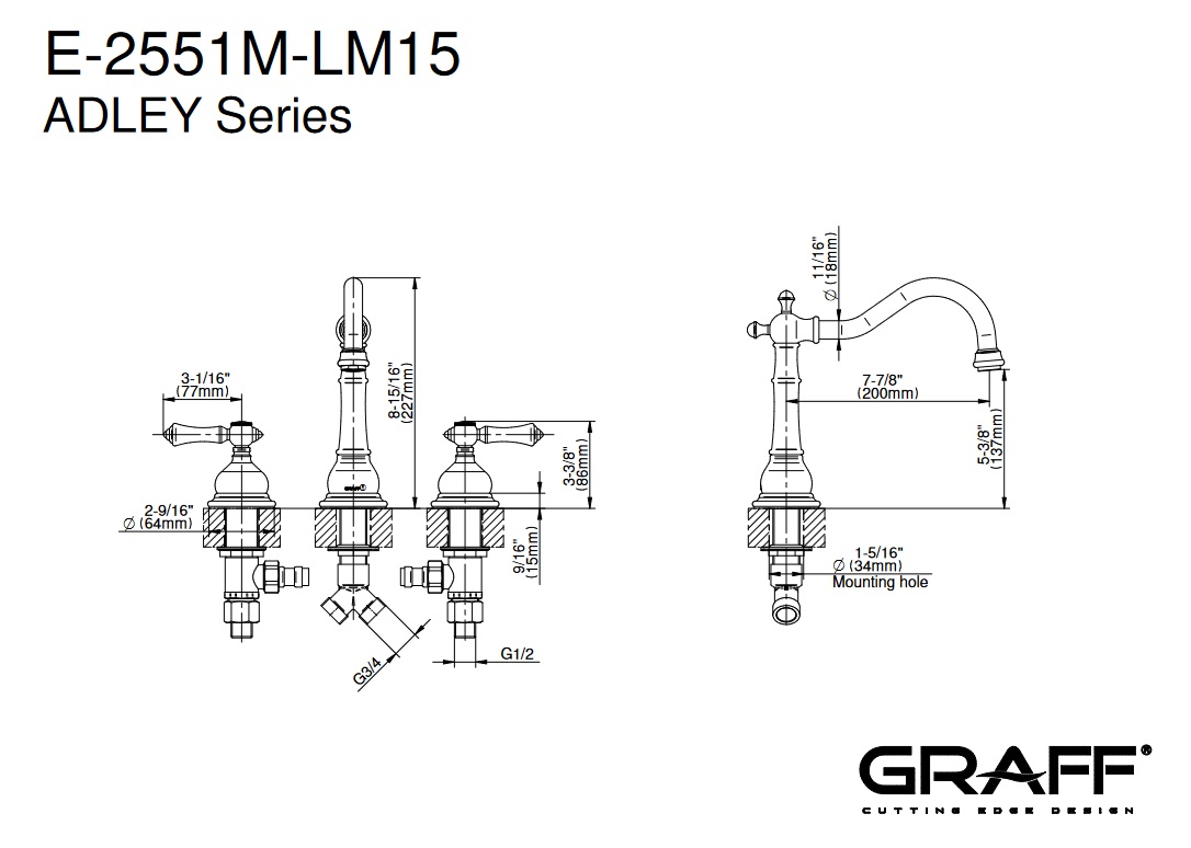 Graff Adley Bateria wannowa 3-otworowa Chrom E-2550M-LM15