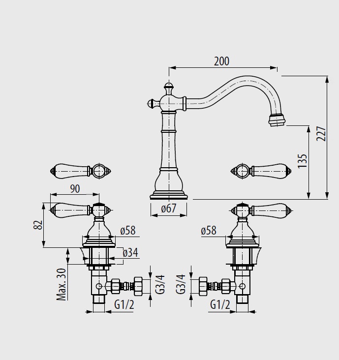 Graff Adley Bateria wannowa 3-otworowa z zestawem prysznicowym Chrom E-2550C-LC1