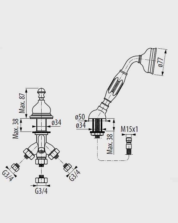 Graff Adley Zestaw natryskowy z przełącznikiem Chrom E-2555