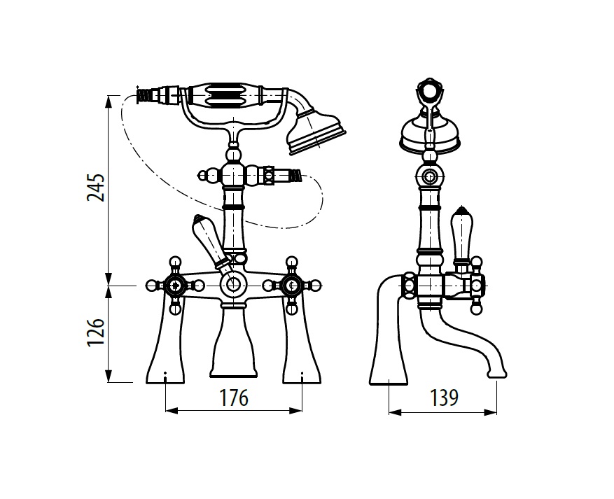 Graff Adley Bateria wannowa 2-otworowa montowana na brzegu wanny z zestawem prysznicowym Chrom E-3890-LM15
