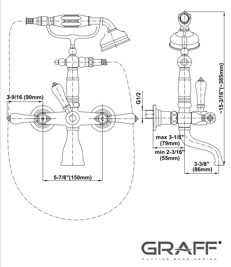 Graff Adley Bateria wannowo-natryskowa ścienna z zestawem prysznicowym Chrom E-3852-LM15