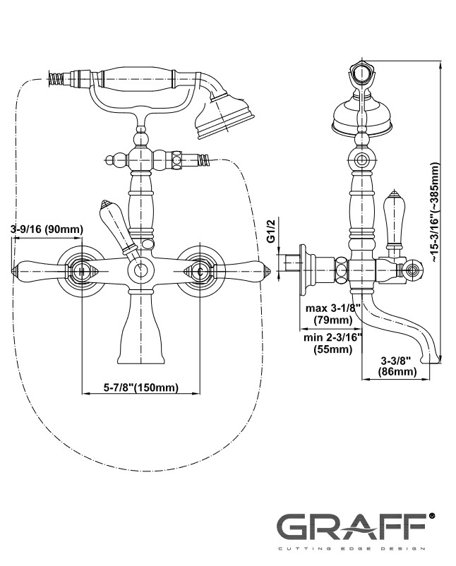 Graff Adley Bateria wannowo-natryskowa ścienna z zestawem prysznicowym Chrom E-3853-LC1