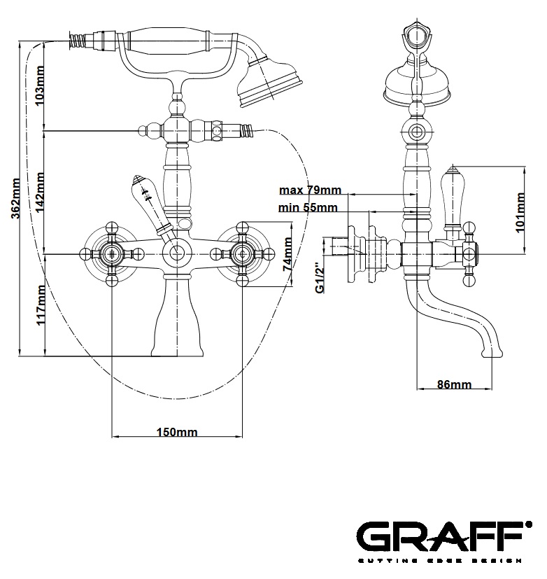 Graff Adley Bateria wannowo-natryskowa ścienna z zestawem prysznicowym Chrom E-3853-C2
