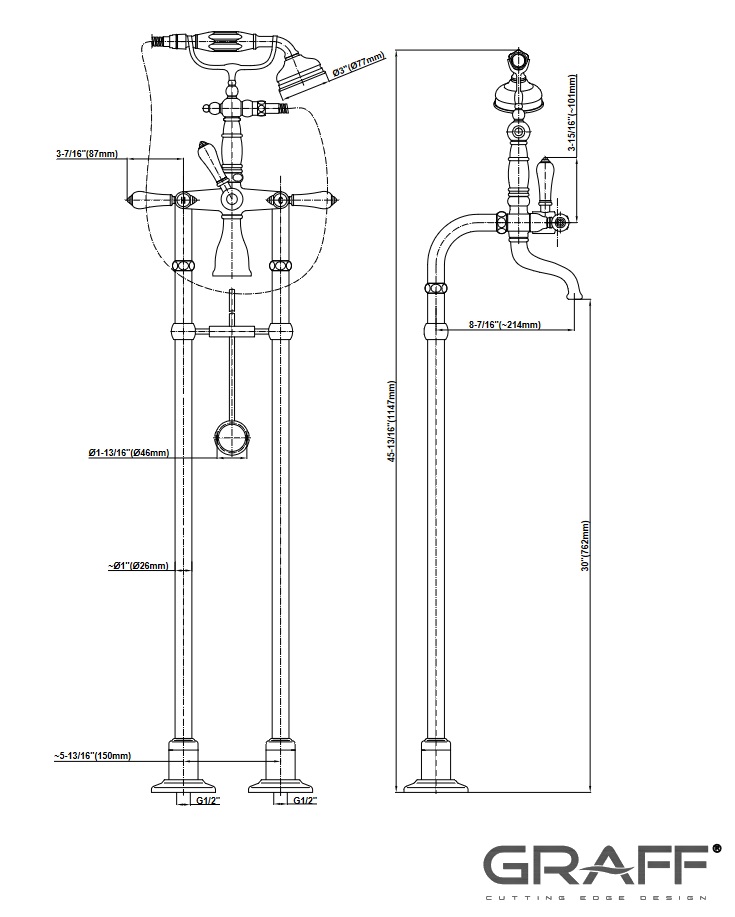 Graff Adley Bateria wannowo-natryskowa wolnostojąca z zestawem prysznicowym Chrom E-3895-LM15