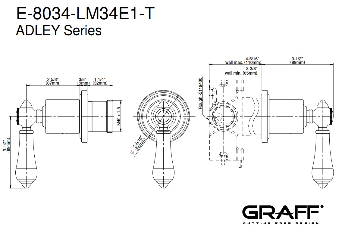 Graff Adley Rozdzielacz 2-drożny podtynkowy - element zewnętrzny Chrom E-8034-LM34E1-T