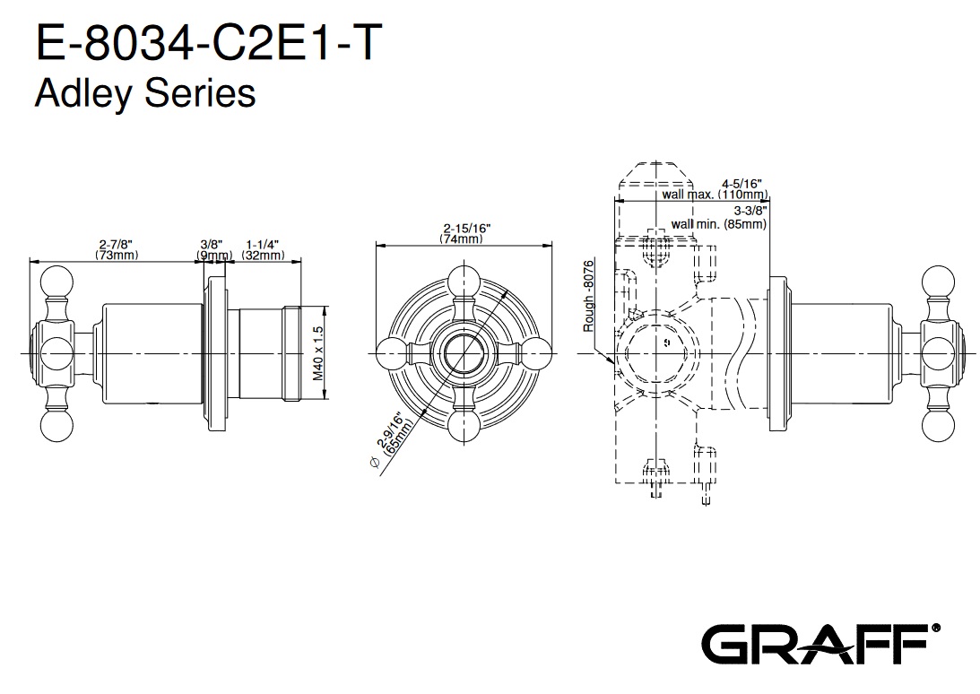 Graff Adley Rozdzielacz 2-drożny podtynkowy - element zewnętrzny Chrom E-8034-C2E1-T