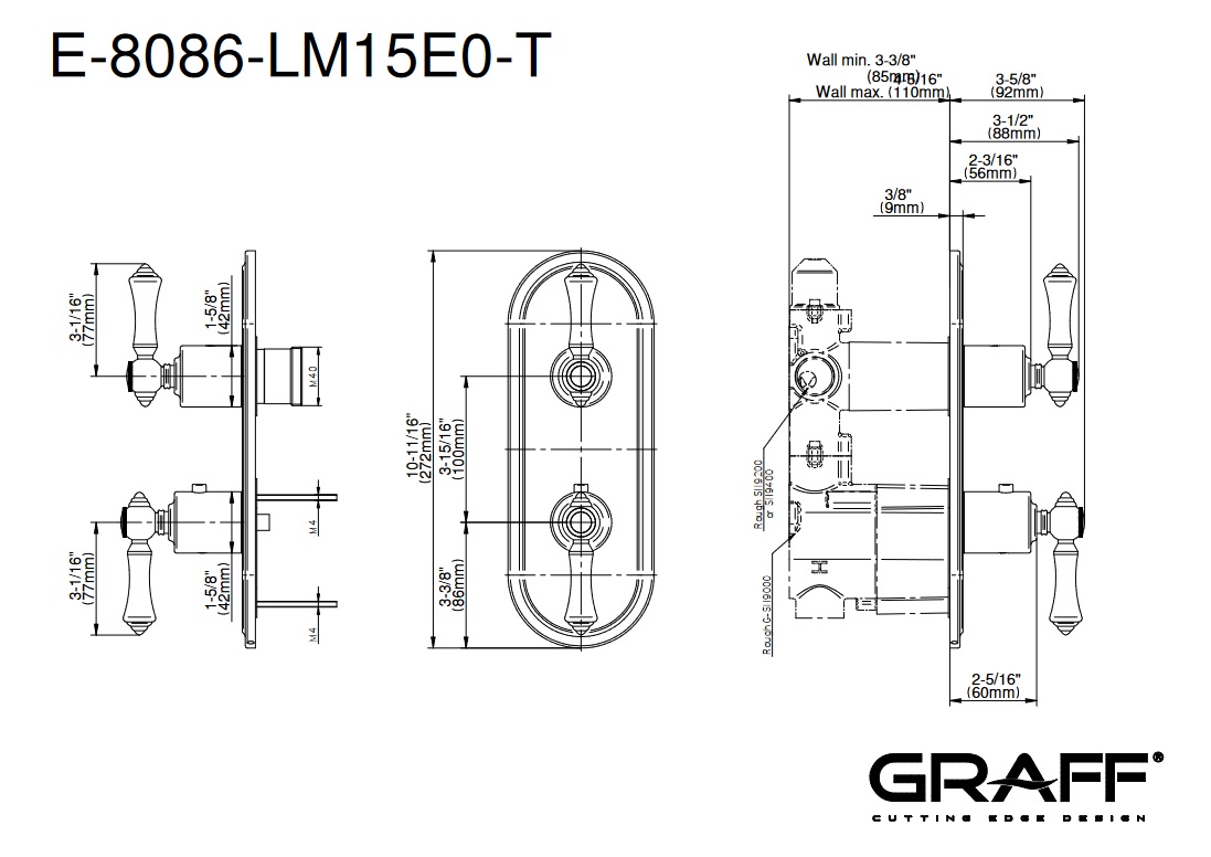 Graff Adley Bateria prysznicowa termostatyczna 2-uchwytowa podtynkowa - element zewnętrzny Chrom E-8086-LM15E0-T