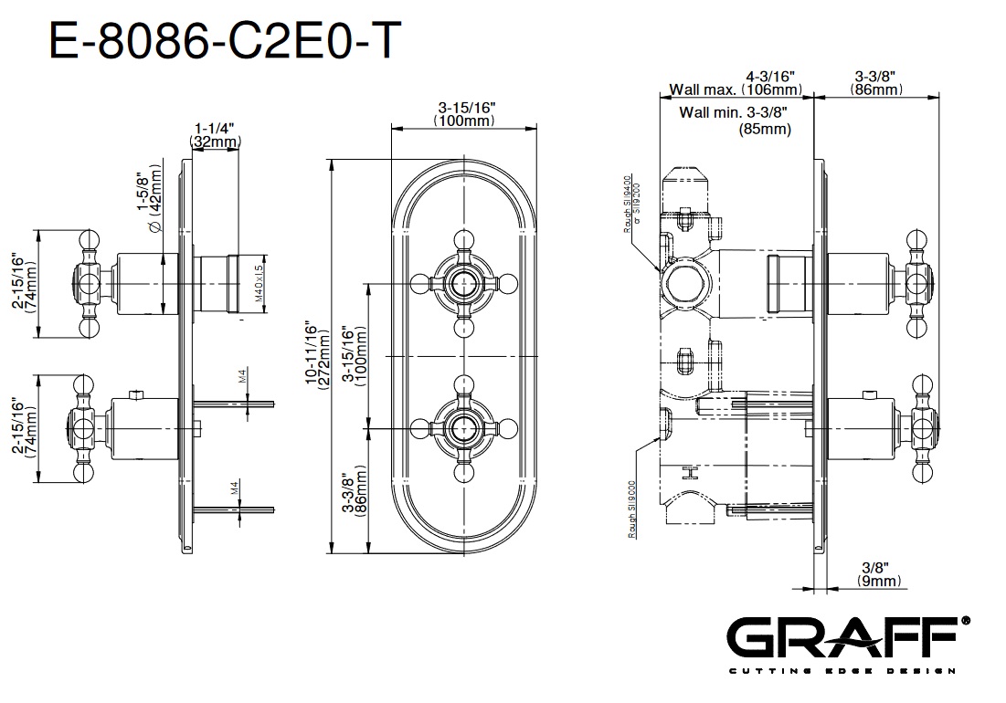 Graff Adley Bateria prysznicowa termostatyczna 2-uchwytowa podtynkowa - element zewnętrzny Chrom E-8086-C2E0-T
