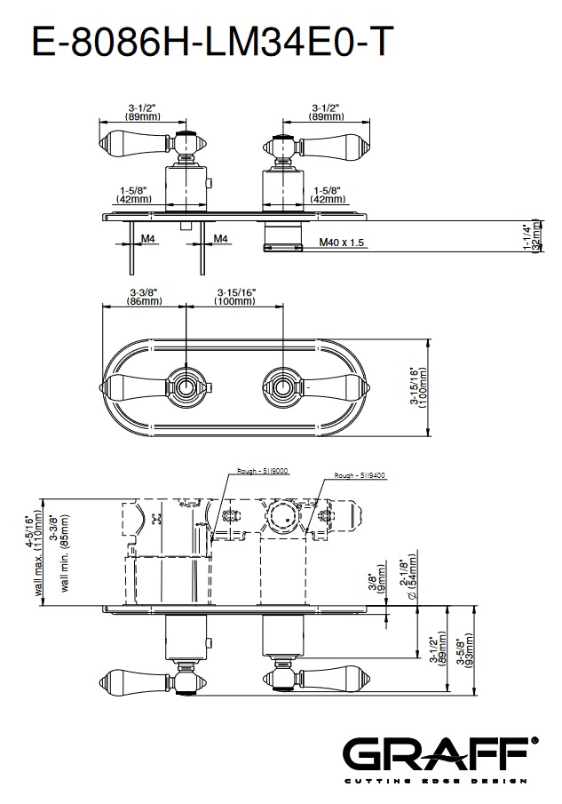 Graff Adley Bateria prysznicowa termostatyczna 2-uchwytowa podtynkowa - element zewnętrzny Chrom E-8086H-LM34E0-T