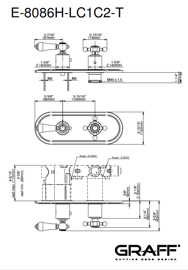Graff Adley Bateria prysznicowa termostatyczna 2-uchwytowa podtynkowa - element zewnętrzny Chrom E-8086H-LC1C2-T
