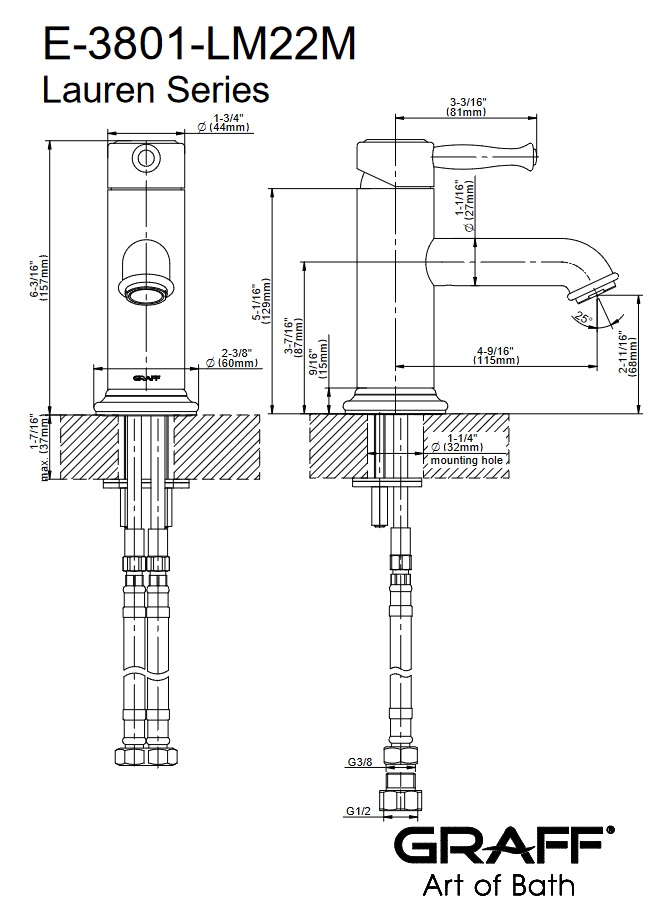 Graff Lauren Bateria umywalkowa jednootworowa Chrom E-3801-LM22M