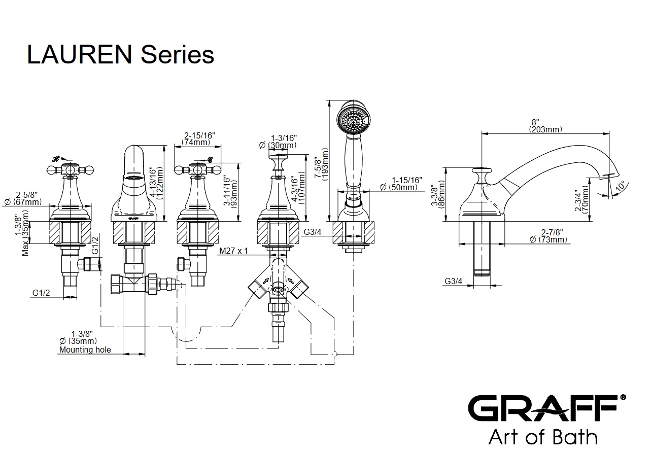 Graff Lauren Bateria wannowa 5-otworowa z zestawem prysznicowym Chrom E-2453-C21B
