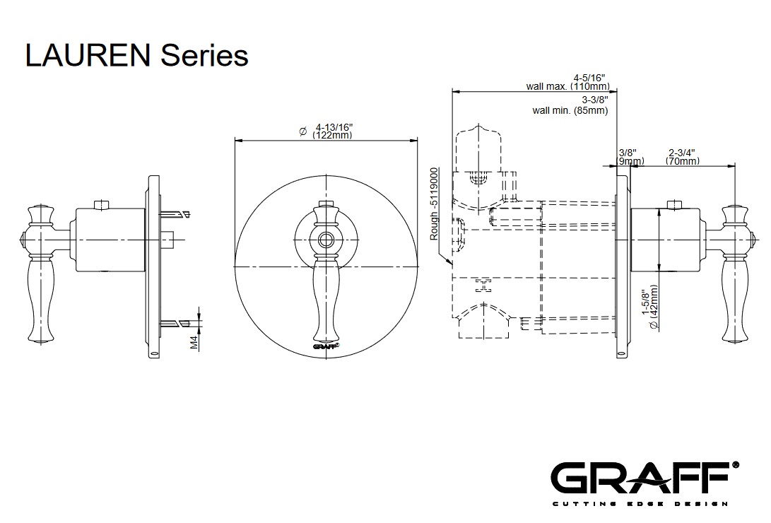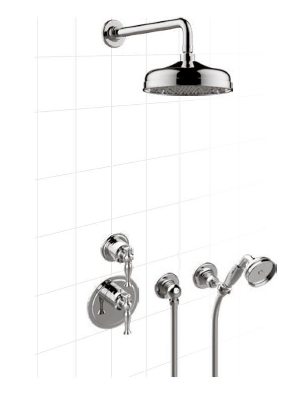 Graff Lauren Zestaw natryskowy podtynkowy z deszczownicą Ø 205 mm z zestawem prysznicowym - element zewnętrzny Chrom LAU01