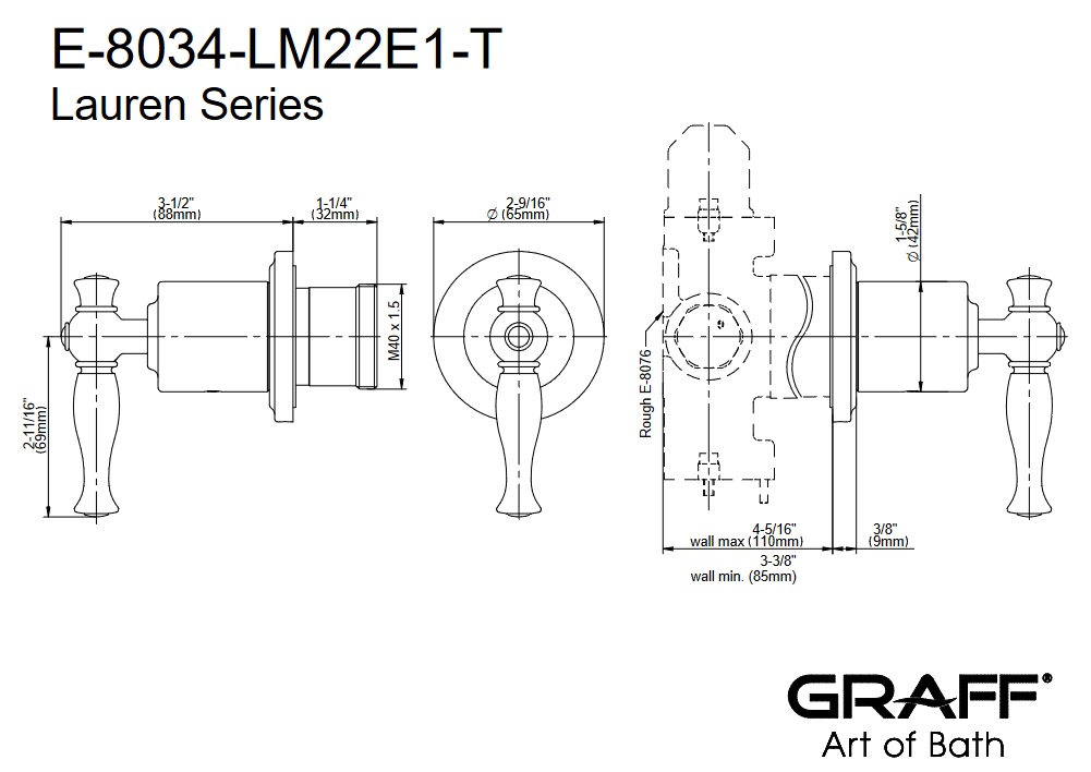 Graff Lauren Zawór odcinający podtynkowy - element zewnętrzny Chrom E-8034-LM22E1-T