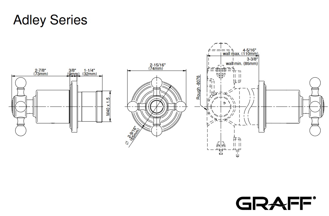 Graff Lauren Zawór 3-drożny podtynkowy - element zewnętrzny Chrom E-8039-LM22E1-T