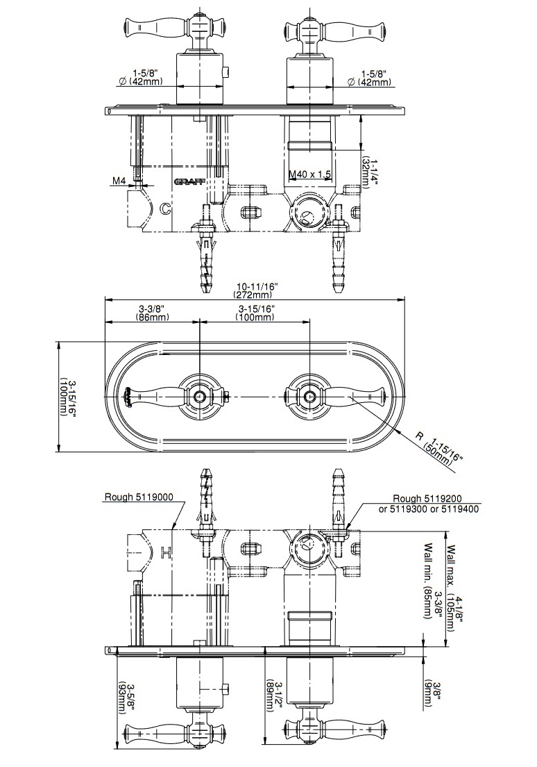 Graff Lauren Bateria prysznicowa termostatyczna 2-uchwytowa podtynkowa - element zewnętrzny Chrom E-8086H-LM22E0-T