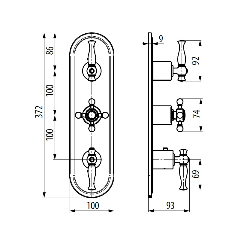 Graff Lauren Bateria prysznicowa termostatyczna 3-uchwytowa podtynkowa - element zewnętrzny Chrom E-8087-LM22C2-T