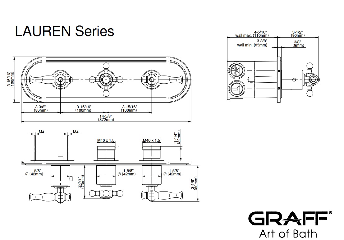 Graff Lauren Bateria prysznicowa termostatyczna 3-uchwytowa podtynkowa - element zewnętrzny Chrom E-8087H-ALM22C2-T