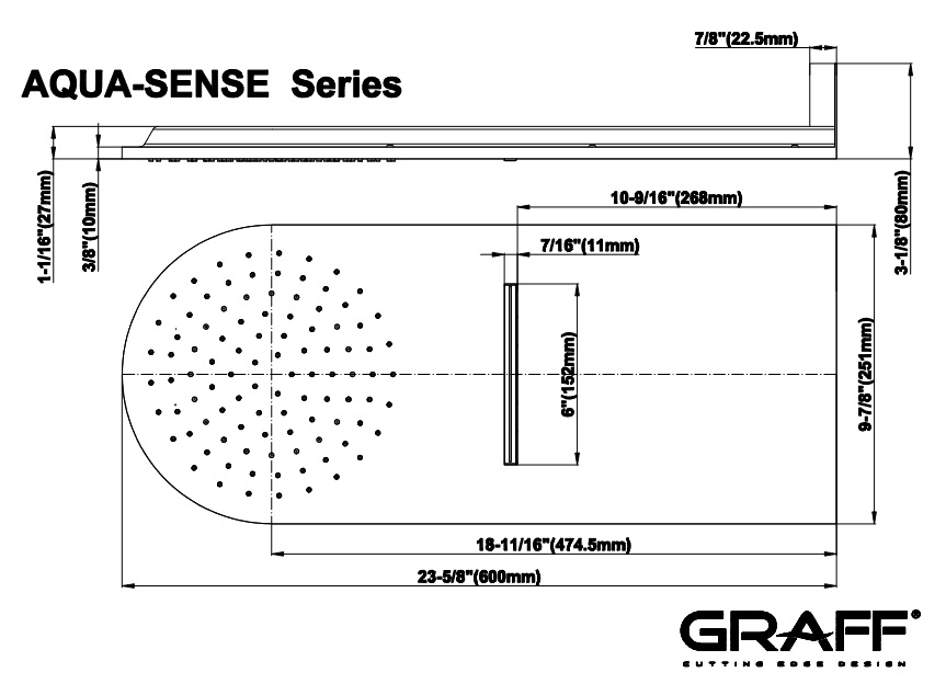 Graff Aqua-Sense Deszczownica prysznicowa wielofunkcyjna ścienna Polerowana stal E-8225-PS