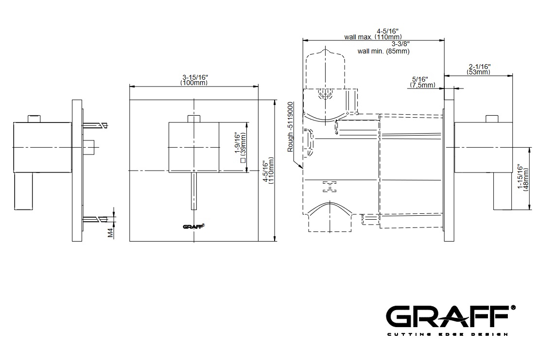 Graff Aqua-Sense Zestaw natryskowy termostatyczny podtynkowy z deszczownicą 600x450 mm sufitową i zestawem prysznicowym Polerowana stal AQ03-PC