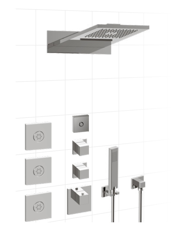 Graff Aqua-Sense Zestaw natryskowy termostatyczny podtynkowy z deszczownicą ścienną i zestawem prysznicowym Polerowana stal AQ05-PC