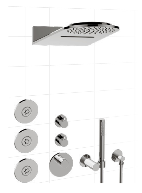Graff Aqua-Sense Zestaw natryskowy termostatyczny podtynkowy z deszczownicą ścienną i zestawem prysznicowym Polerowana stal AQ07-PC