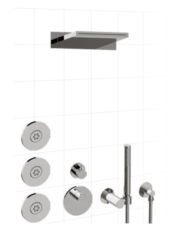 Graff Aqua-Sense Zestaw natryskowy termostatyczny podtynkowy z deszczownicą ścienną i zestawem prysznicowym Polerowana stal AQ09-PC